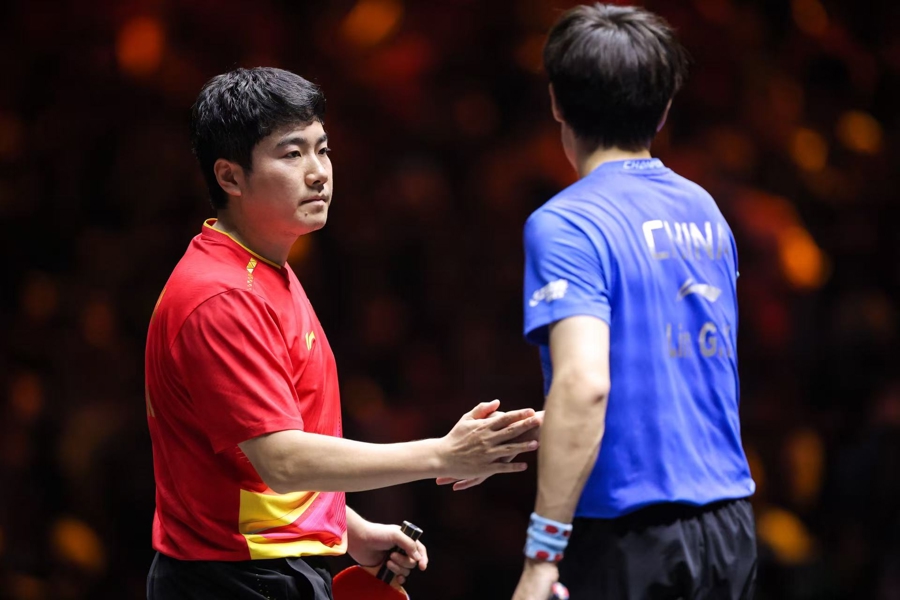 尽管是一场“内战”,八极场内的情绪显得有些微妙。10月1日中午的比赛,球迷们为林高远加油的声音更为响亮,林高远在先下一城后,被老队友梁靖崑连扳三局,就此止步中国大满贯男单三十二强。赛后,他向观众们挥手致意,然后回到球台边,用手摸了摸球台和球网。